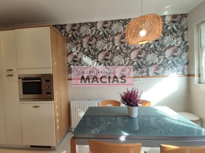 La vivienda, en perfecto estado para entrar a vivir y completamente amueblada, se distribuye en hall de entrada, tres habitaciones, salón, cocina, baño completo y aseo, con una organización funcional y confortable. Materiales y acabados de primera calidad. Ventanas de doble cristal oscilobatientes y calefacción de gasoil con contador y caldera individual.
